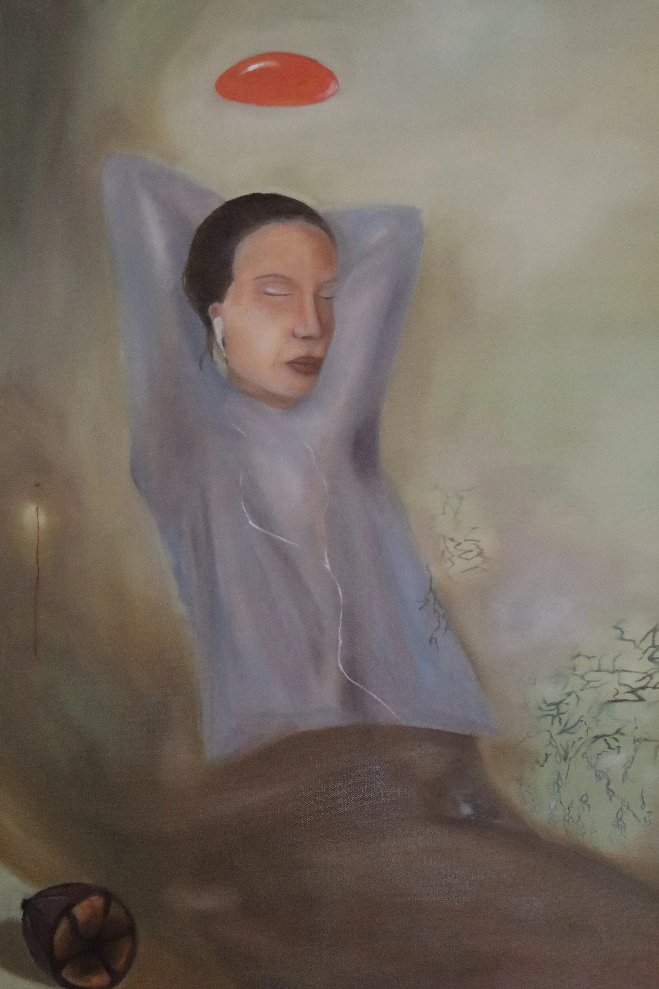 Nap: oil on canvas surrounded by my clay sculptures 2024